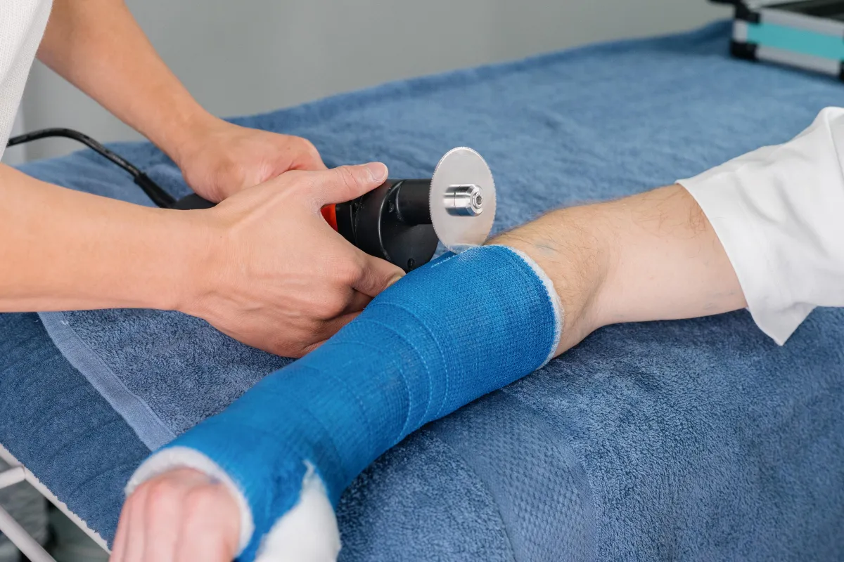 When it’s time to remove the cast, we’ll use a special cast saw. It might look intimidating, but it only cuts the cast, not your skin. After removal, we’ll guide your recovery by helping you regain movement, strength, and control.